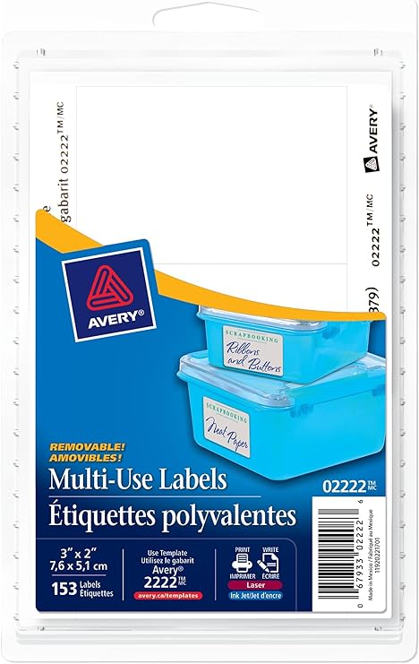 Avery Multi-Use Removable Labels, 3" x 2", White, Rectangle, 153 Labels, Removable (2222 ...