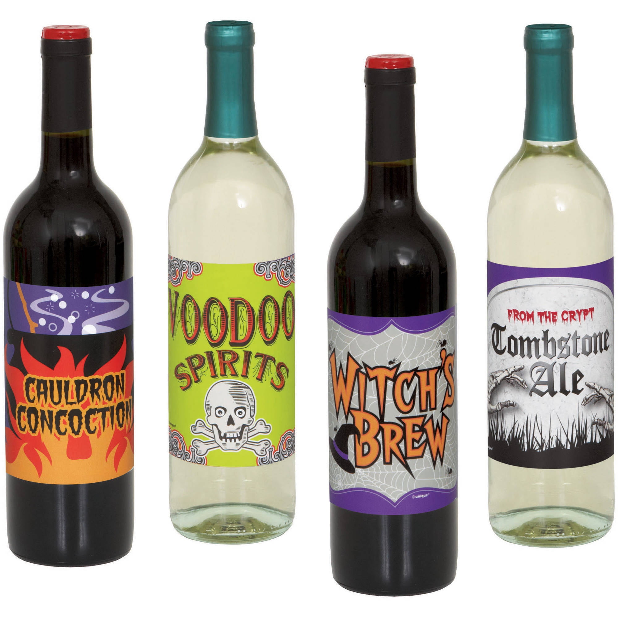 Morbid Enterprises Halloween Wine Bottle Stickers (8 Count) They're a little short by a few mm to cover the whole label on a bottle of wine. Still, they're great-looking, and the people at my Halloween party thought they were awesome. They also conveniently don't wrap all the way around the bottle, so you can still turn it around to the back label and see what the heck you're drinking. =)